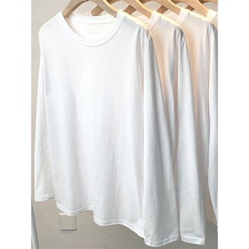 軟糯舒適 250g重磅精梳棉白色長袖t恤柔軟親膚寬松純色基礎打底衫