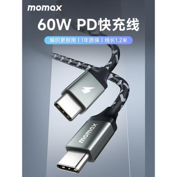 MOMAX摩米士雙type-c充電線60W快充c-c數據線100W適用于蘋果15promax平板ipad公對公macbook筆記本電腦充電線