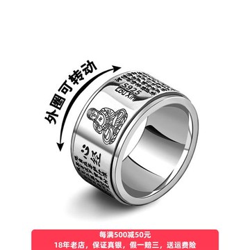 999足銀十二生肖本命佛戒指轉動男士純銀復古霸氣個性男潮女扳指