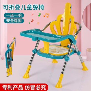 兒童餐椅不銹鋼折疊靠背椅寶寶叫叫椅子可拆餐盤可調高度升降防滑