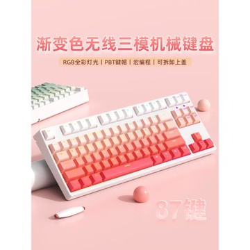 藍牙無線三模粉色機械鍵盤87鍵游戲電競青軸黑茶銀紅軸客制化電腦