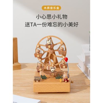 木質旋轉火車音樂盒八音盒摩天輪刻字生日禮物女生閨蜜朋友伴手禮