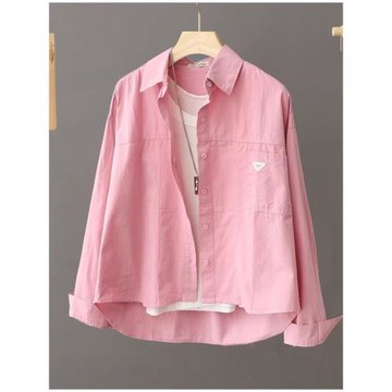 薄款防曬藍色純棉襯衫女裝夏季2025新款襯衣粉色內搭寬松上衣外套
