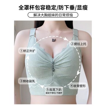 清倉超薄大碼文胸無鋼圈調整型內衣大胸顯小全罩杯收副乳哺乳胸罩