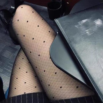 早秋10D暗黑圓點格子美腿黑絲襪 清新奶白粉綠色顯瘦提花連褲襪女