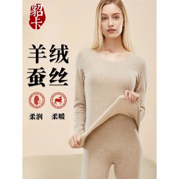 蠶絲羊絨無痕保暖內衣女德圓領自打底衫發熱上衣加絨秋衣秋褲套裝