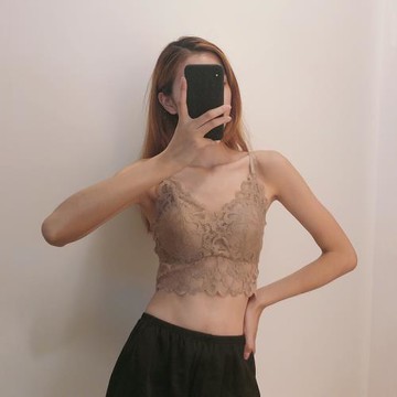 吊帶背心女帶胸墊內搭打底蕾絲性感鏤空防走光抹胸式文胸薄款內衣