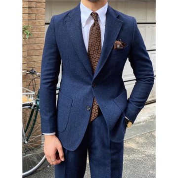鹿三先生人字紋修身羊毛西服復古紳士宴會小西裝休閑正裝商務潮男