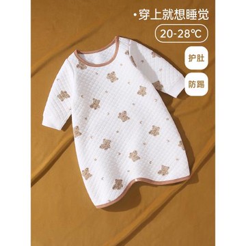 嬰兒睡衣春秋季女寶寶防著涼睡裙護肚防踢秋冬天長袖居家服連體衣