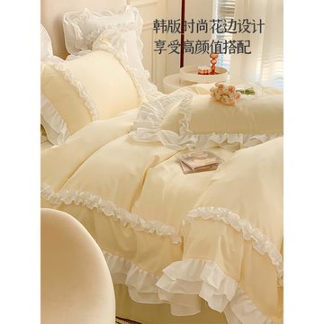 2025新款奶油公主風床上四件套花邊被套被罩床單四季通用床品三4