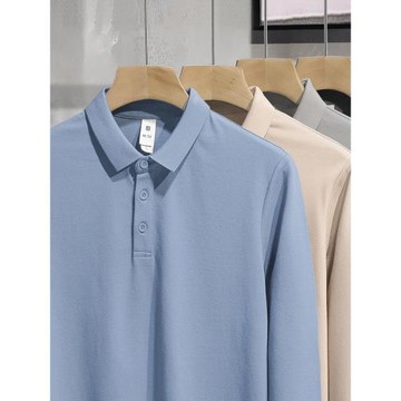 2025新款絲光珠地棉翻領polo衫男長袖t恤保羅帶領打底衫純色秋衣