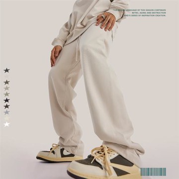 美式街頭大地色重磅400G休閑長褲男女潮牌高街寬松直筒運動褲衛褲