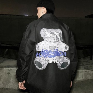 SSUR聯名Chrisuno秋冬小熊系列教練夾克男女情侶潮牌外套
