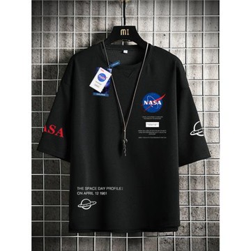 NASA聯名旗艦店夏季短袖t恤男士日系BF風上衣寬松七分袖情侶男生