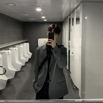 韓系ins輕熟鹽系西裝男藝術生酷帥風格穿搭藍色外套垂墜西服套裝