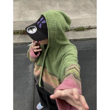 自主平替版Kiko kostadinov連帽拉鏈開衫短針織毛衣男女同款衛衣