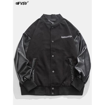 美式棒球服黑色外套男秋冬季情侶潮牌刺繡燙鉆pu皮加棉飛行夾克男