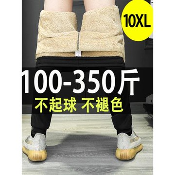 350斤加絨褲男加肥加大碼肥佬棉褲特體冬褲男士加厚羊羔毛休閑褲
