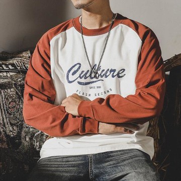 美式復古春秋款拼色潮牌T恤男長袖2025年新款寬松純棉加絨打底衫