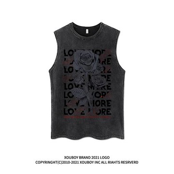 美式高街暗黑玫瑰印花坎肩背心男潮牌街頭ins寬松休閑運動無袖T恤