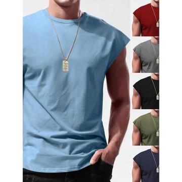2025夏季新款男士大碼無袖t恤休閑寬松純色坎肩上衣潮Men's vest