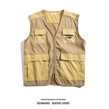 點我下載日系ins多口袋工裝馬甲外套男潮牌寬松休閑拼色機能痞帥無袖背心