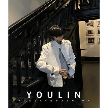 劉宇同款新中式痞帥男士設計感道袍西裝新中式蒲公英刺繡西服外套