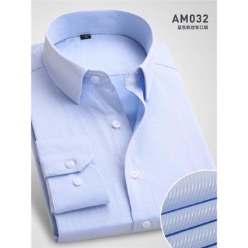 春季商務西裝襯衫男長袖青年職業工裝淺藍色斜紋襯衣寸衫條紋大碼