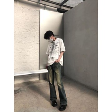 黃泥牛仔褲美式高街vibe褲子男款春秋新潮牌復古微喇褲直筒闊腿褲