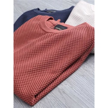 低飽和圓領麻花紋針織