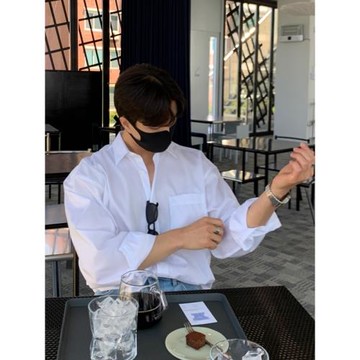 【衣衫倉庫】韓國 水洗 襯衫 短袖 寬鬆 落肩 情侶款 男生短袖 短板 口袋 男生衣服 韓版 復古