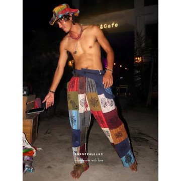 復古休閑褲手工拓印男嬉皮褲子女純棉拼接民族風寬松棉麻工裝長褲