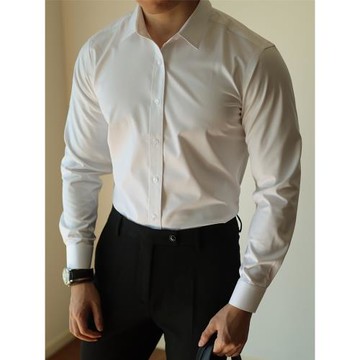 春秋季男士絲光棉長袖襯衫冰絲修身免燙襯衣2025新款商務休閑男裝
