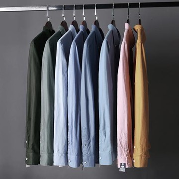 日系風!斜紋肌理純棉面料!外貿男裝秋季新款休閑純色長袖襯衫潮