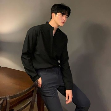 立領襯衫男長袖潮牌免燙抗皺寬松黑色男士襯衣潮ins純色休閑潮流