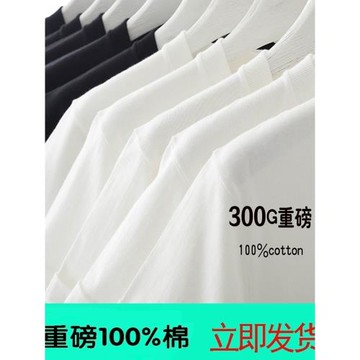 百搭基礎款T!300G重磅純棉碳素磨毛白色短袖T恤純色百搭正肩半袖