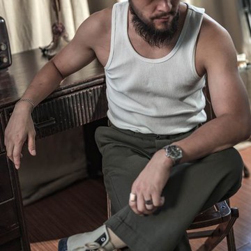 NON STOCK新品 基本款純棉修身打底背心男士純色圓領復古休閑汗衫