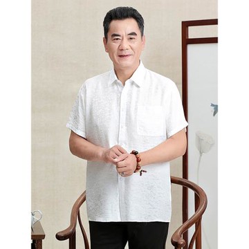 杭州絲綢中老年人男士式短袖真絲夏裝寬松桑蠶絲上衣白色爸爸襯衫