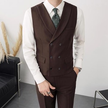 通勤商務男士正裝馬甲潮流百搭西裝領背心網紅紳士禮服休閑兩件套