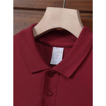 夏季新純棉POLO衫長袖商務男士休閑翻領有領潮開叉酒紅色短袖T恤