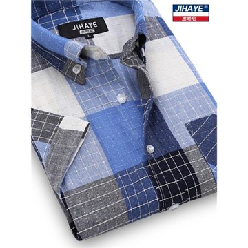 杰哈尼夏季短袖襯衫男士休閑純棉格子襯衫男休閑大碼商務男裝上衣