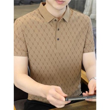 夏季新款高端B字母印花短袖t恤男薄款彈力冰絲無痕翻領polo衫體恤
