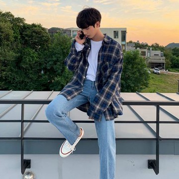 MRCYC復古格子襯衫男士長袖休閑襯衣韓系潮流寬松外套港風衣服