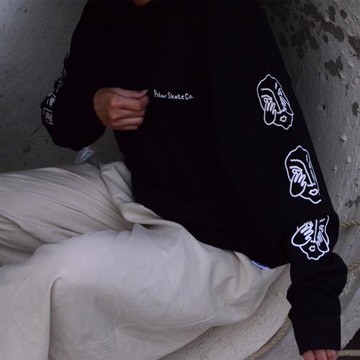 玉昇美容院|黑 長袖 T恤 大學T ST Logo Crewneck 復古