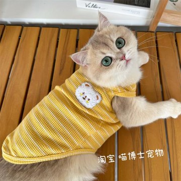 寵物夏季薄款背心可愛英短貓咪小貓衣服防掉毛小熊條紋狗狗T恤