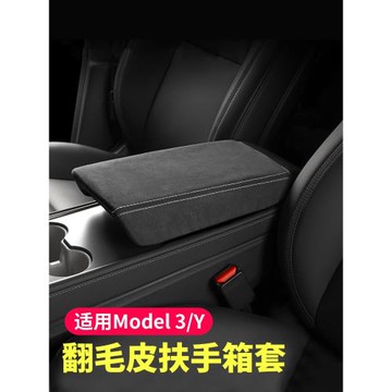 適用特斯拉煥新ModelY/3中央扶手箱套翻毛皮中控手扶箱墊內飾改裝