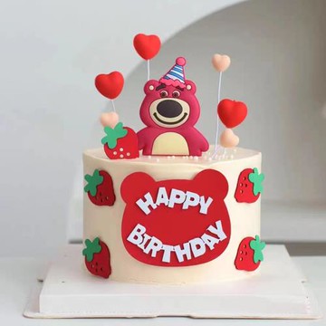 網紅兒童生日蛋糕裝飾可愛卡通草莓熊頭擺件粉色小熊草莓裝扮插件