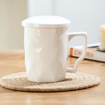 景德鎮純白簡約骨瓷杯家用帶蓋杯子高顏值水杯馬克杯喝牛奶杯茶杯