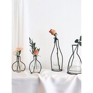 北歐鐵藝線條干花器花瓶擺件客廳插花抽象玻璃透明簡約創意裝飾
