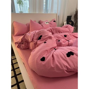 少女治愈系ins愛心刺繡毛巾繡水洗棉裸睡被套四件套床單三件套1.8